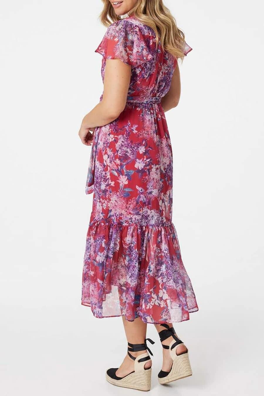 Red Pattern Frill Dress