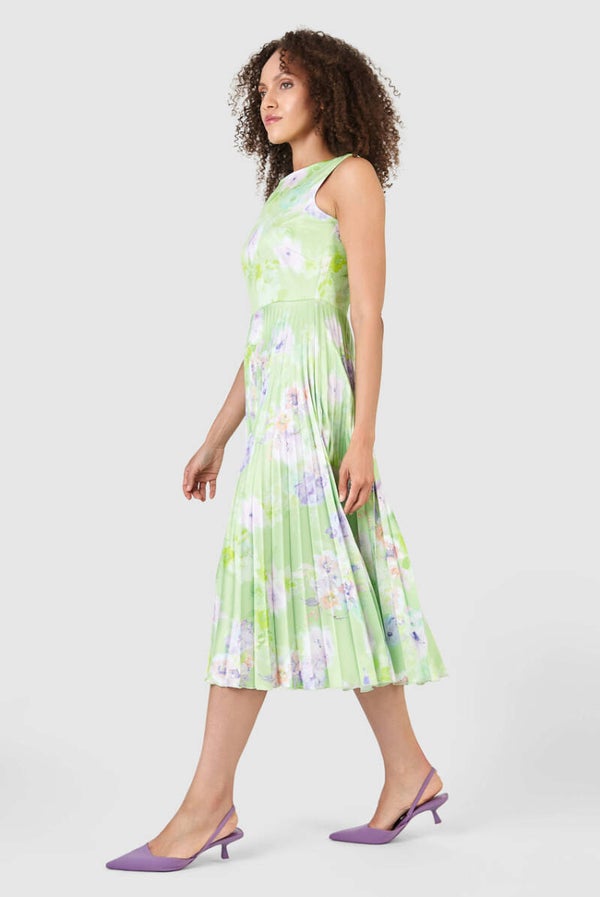 Lime floral pleated designer dress