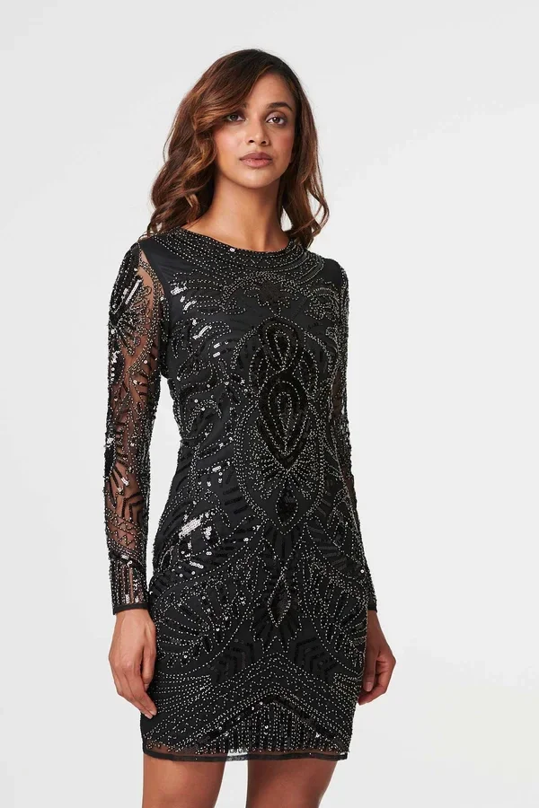 Black fully beaded dress