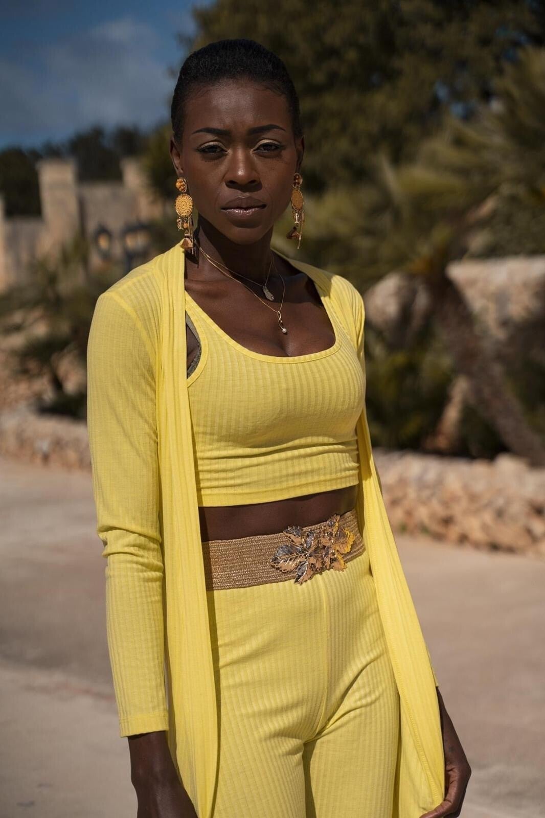 Set of 3 ; Crop top, Long cardigan, Trousers
