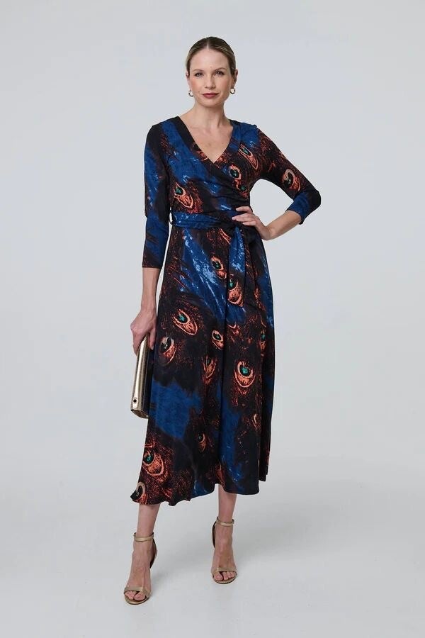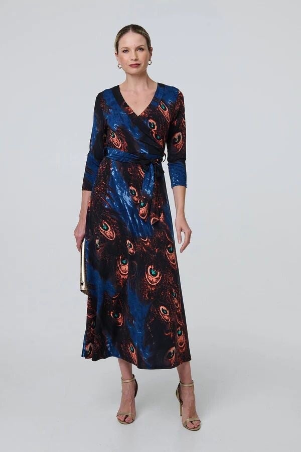 Peacock pattern jersey dress