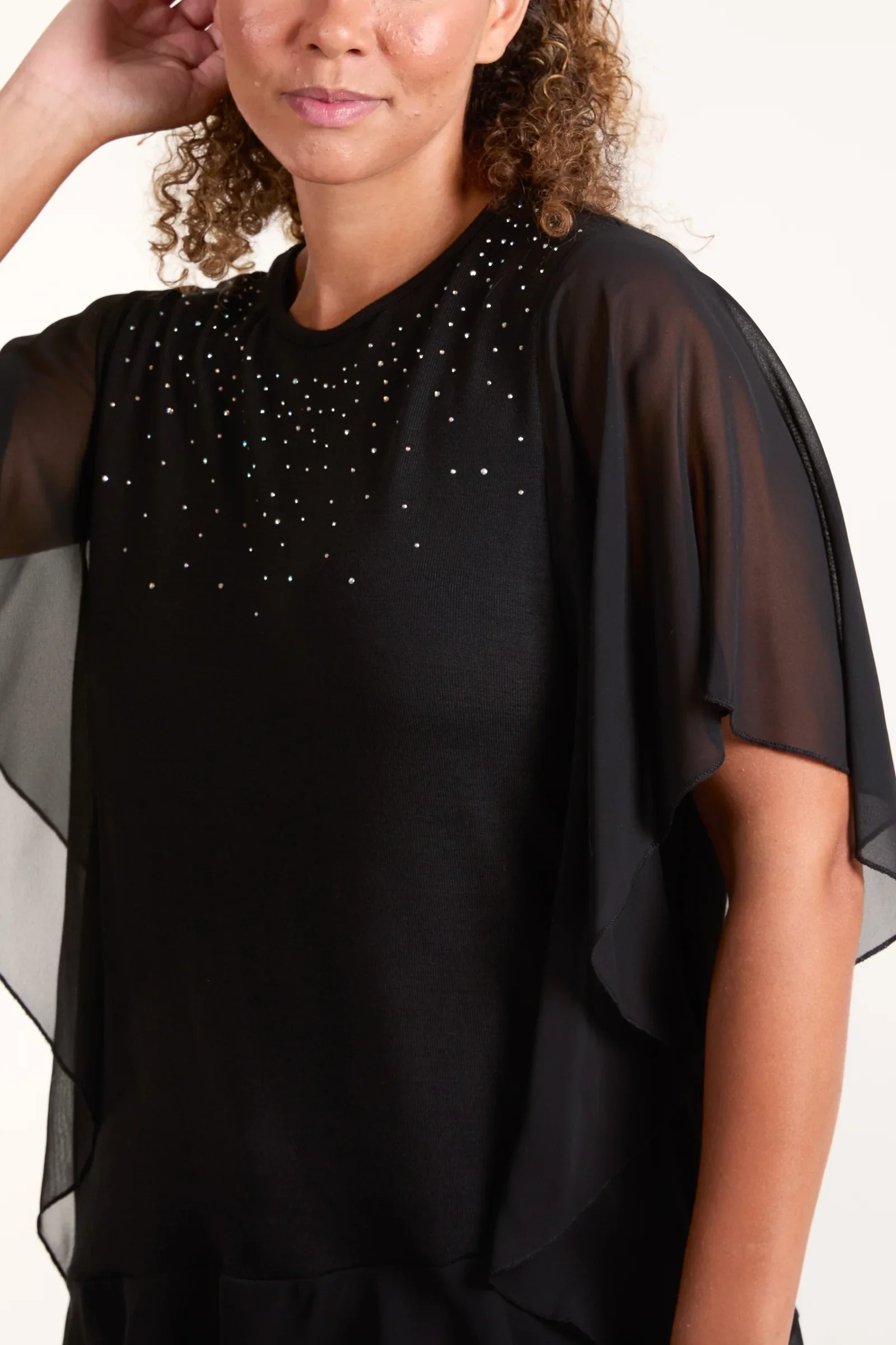 Diamante Ruffle Mesh Top