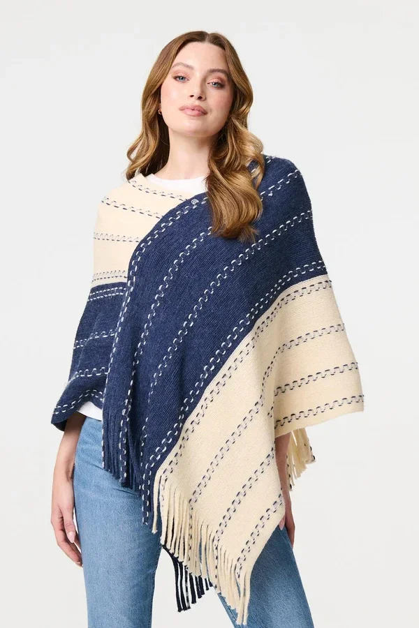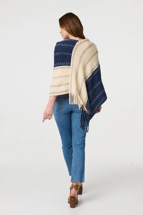 Striped tassle detail poncho
