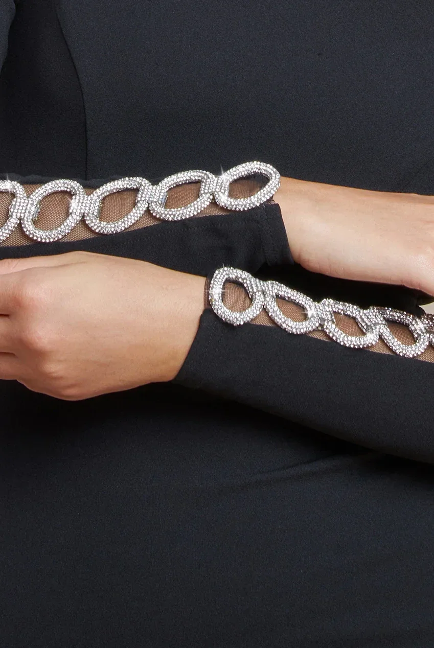 Diamante sleeve Bardot dress