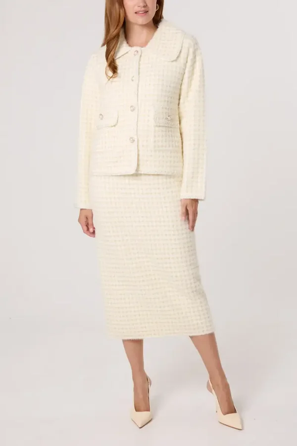 Collared Check Knit Set